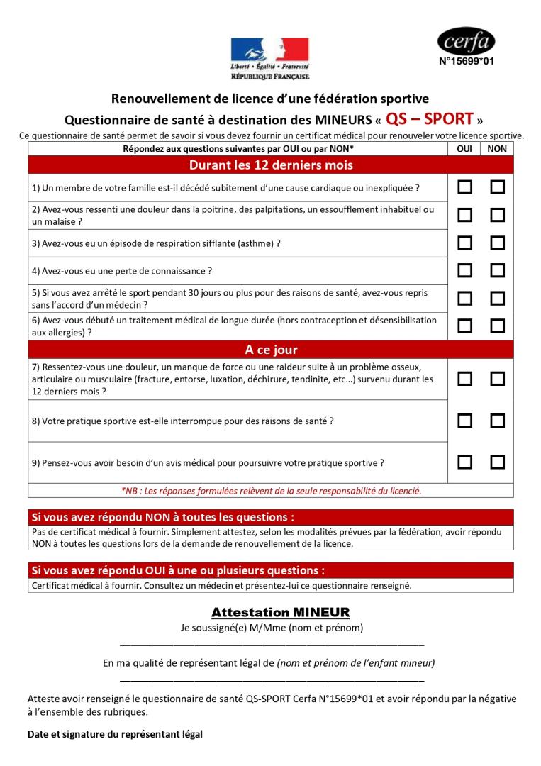 - Certificat médical de non contre-indication à la pratique sportive – saison 2025/2026 (établi à partir du 1er septembre 2025)