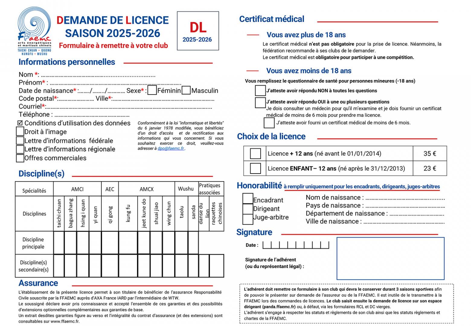 - Formulaire de demande de licence : Karaté // Taekwondo // Kung-fu